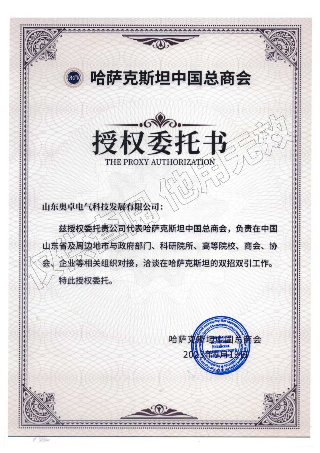 為深度融入 “一帶一路” 建設(shè),深化濰坊與中亞地區(qū)經(jīng)貿(mào)往來,在中國國際貿(mào)易促進(jìn)委員會(huì)濰坊市委員會(huì)的統(tǒng)一部署下,中亞濰坊總商會(huì)積極推進(jìn)境外布局工作。近日,中亞濰坊總商會(huì)會(huì)長、山東奧卓電氣科技發(fā) ...